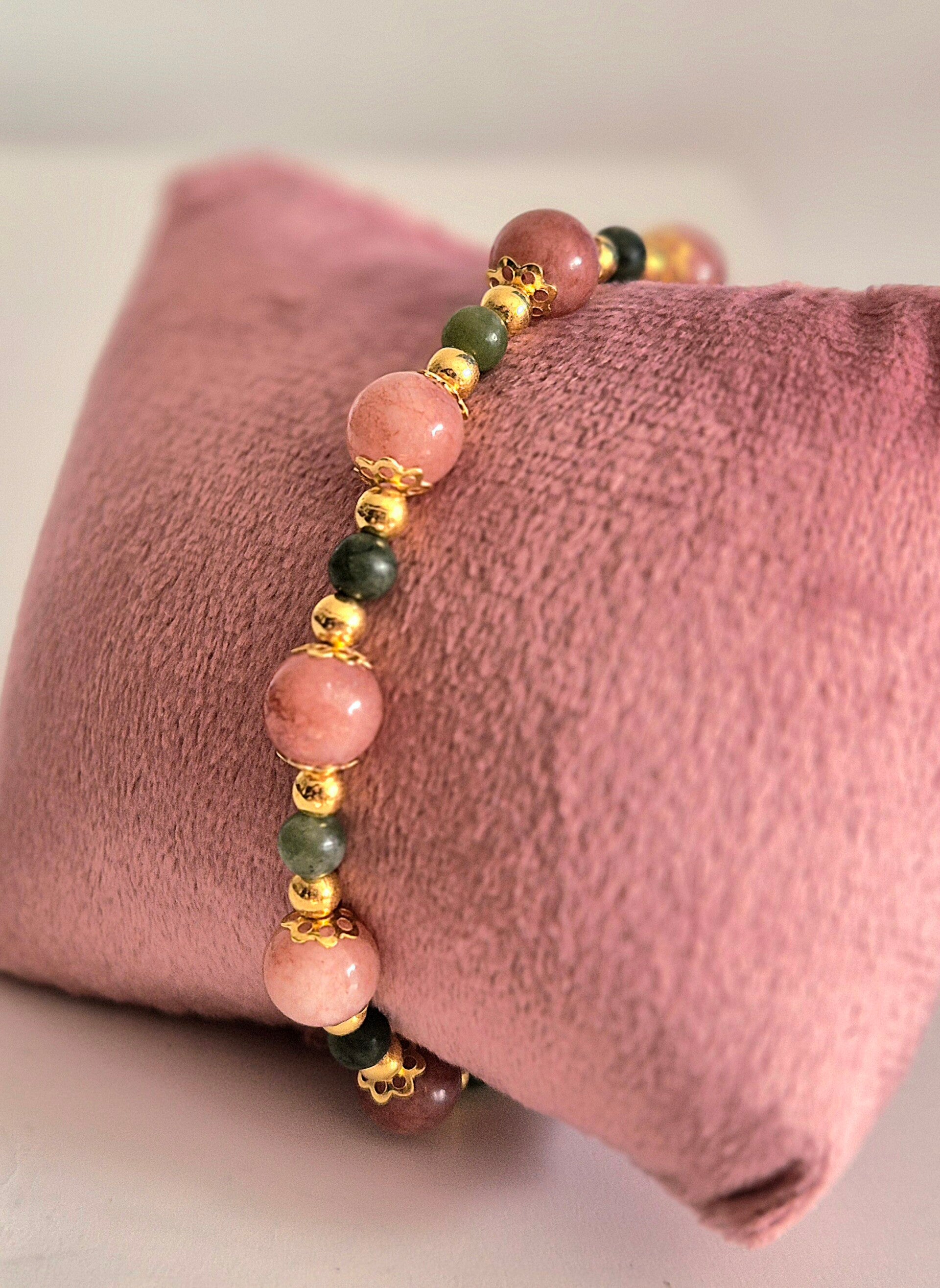 Bracelet de pierres de morganite et jade vert